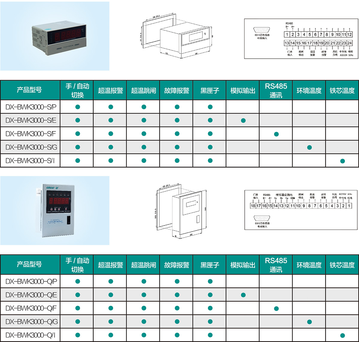 DX-BWK系列變壓器溫度控制器是專為干式變壓器安全運行設計的一種智能控制器。該控制器采用單片機為控制核心,利用預埋在干式變壓器繞組或鐵心中的鉑熱電阻來檢測變壓器的溫度,并能根據溫升自動控制冷卻風機的啟停、超溫報警直至超高溫跳閘,以保證干式變壓器的安全運行,從而延長變壓器的工作壽命。該控制器結構簡單,運行可靠,抗干擾能力強,同時還具有“黑匣子”功能,可以記錄停電前三個繞組線包的溫度及本機的工作狀態。